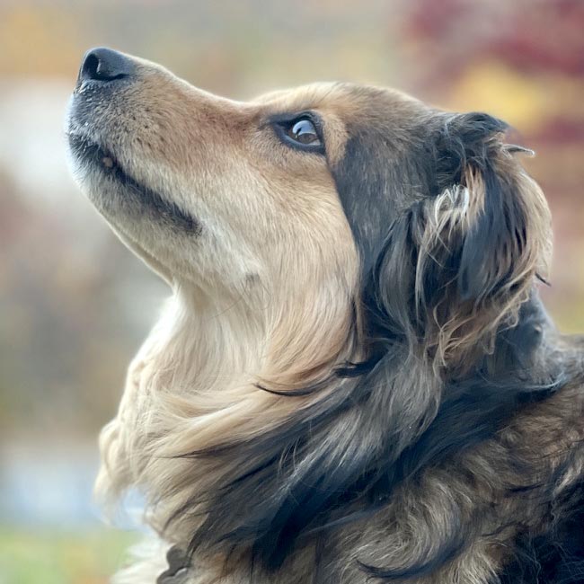 Four-legged, trail running Aussie-Border-Collie, stick fetcher, lover of all things with a beating heart ... lapping up the mountain life.